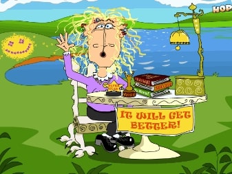 In this animated get well soon ecard Ellen is taken care of by her cat, Winsor.
