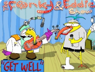 In this birthday eCard, Frankie, the singin' bird, exacts a standard of high quality from Eddie, his drummer, for a birthday tune.